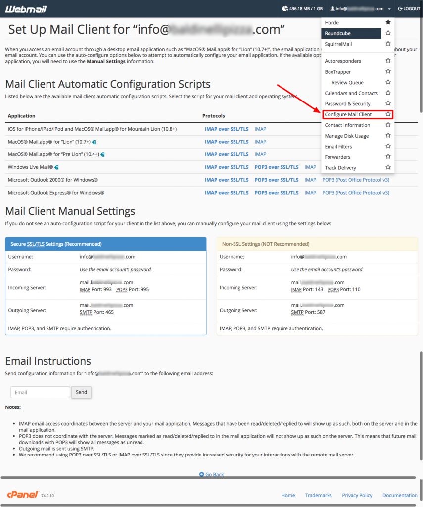 To setup email access on your computer or mobile, login to webmail. Go to “Configure mail client” page. You you find the detailed instructions on how to configure your mail client on computer and mobile phone. Follow the instructions to set up.