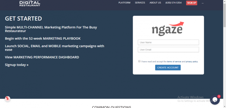 We offer dedicated customer support via email, no matter what your package is. We can also schedule a phone call or email us The first step to register your restaurant on the NGAZE marketing platform is by clicking on thedigitalrestaurant.com/signup or visit our website and click on the button that says “signup”.